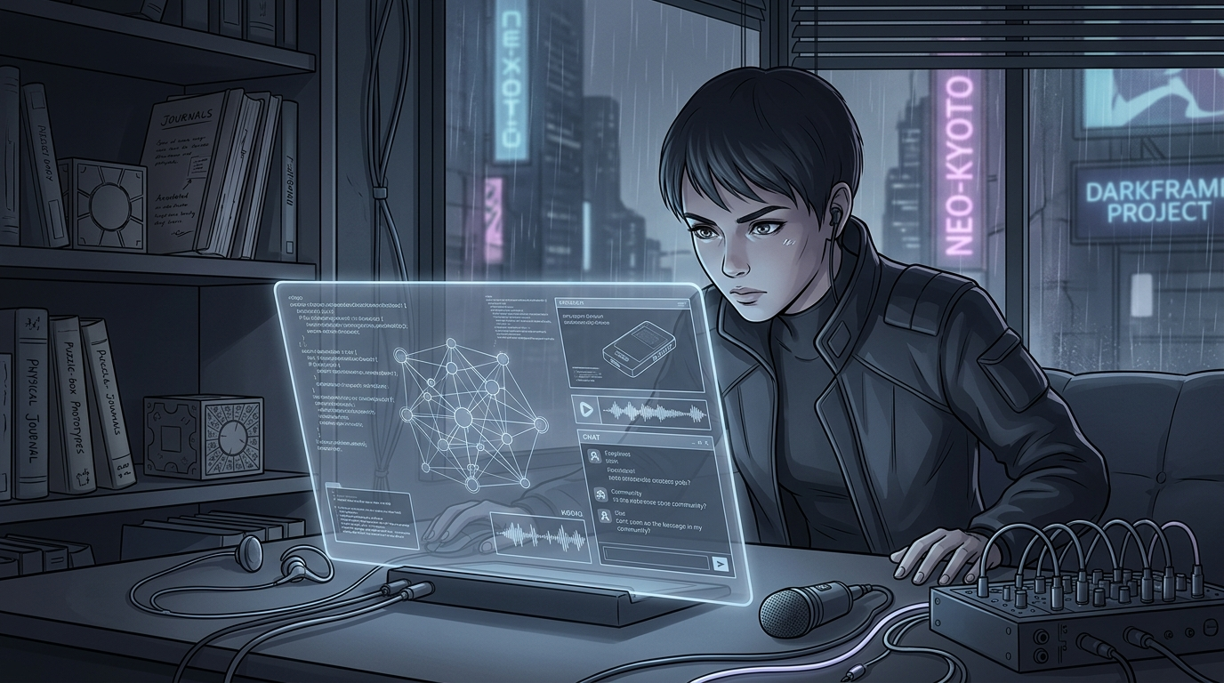 Darkframe began as a single late-night experiment — a website that didn't quite explain itself, a phone number that shouldn't have answered, and a small group of strangers piecing together what it all meant. The reaction told us everything: people are starving for stories that trust them, that hide things on purpose, that ask them to look closer. We started Darkframe to build more of those.
